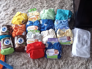 Oh yeah, and prepping these two brands means sticking them in the washing machine. No boiling or anything tricky. I hope to start daytime cloth diapering this week, and moving to nighttime diapering in a few weeks. I can imagine that the learning curve with cloth is large, and I want to be patient with myself and with Ryan. As I gain experience with cloth diapers, I plan to enlarge my stash a bit, but for now, I think I have a nice assortment, and they are pretty "Daddy friendly," which is an added bonus. I know that this is best to get Ryan out of disposables, and I'm excited to see my little Fluffy Butt!